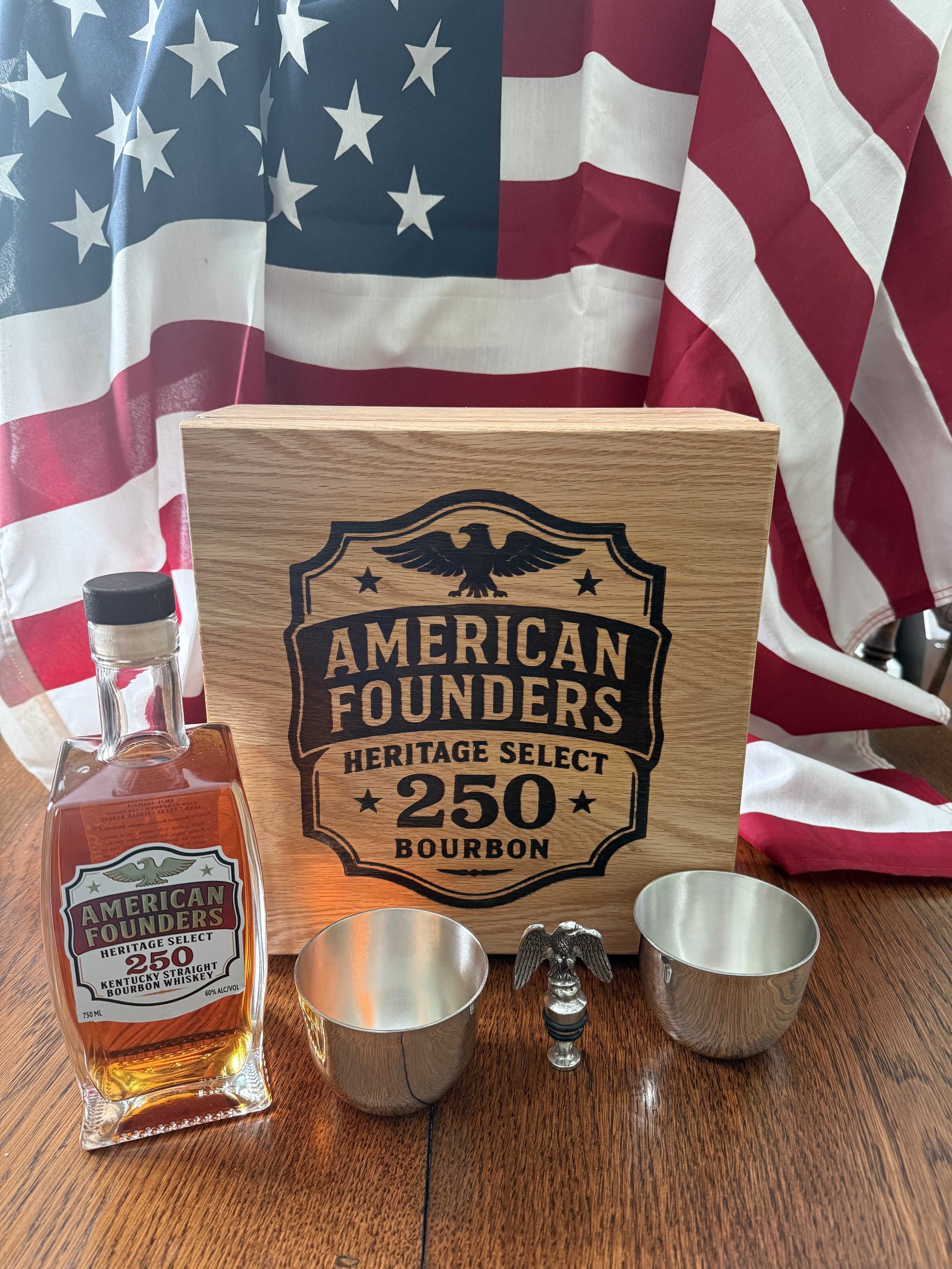 We ask you to please relax, sit back, find a friend, and take the time to have a sip of American Founders Heritage Select 250 Bourbon.